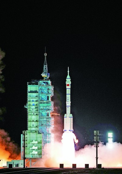 10月16日,搭載神舟十三號載人飛船的長征二號F遙十三運載火箭在酒泉衛星發射中心點火起飛。新華社發