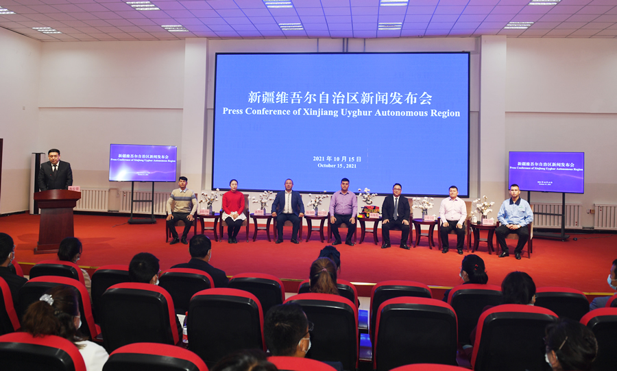 10月15日,新疆維吾爾自治區(qū)在阿克蘇地區(qū)沙雅縣舉辦棉花專場新聞發(fā)布會。面對媒體,伊敏·阿納耶體和其它6位來自周邊縣市的棉花從業(yè)者講述他們與棉花的故事,分享了自己的幸福密碼。