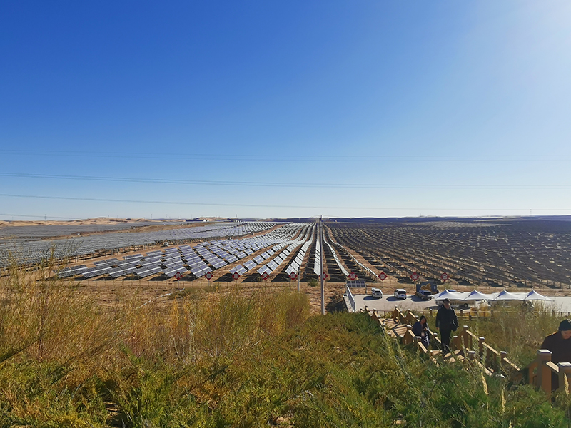達拉特旗發改委副主任王小徑介紹說,這里是內蒙古自治區唯一的國家第三批光伏發電應用領跑基地和獎勵激勵基地。2020年發電量達9.92億度、發電小時數達1983小時。基地規劃建設過程中,始終把生態優先、綠色發展作為根示遵循,在開發利用庫布其沙漠能資源的同時,采用“林光互補”建設模式,推動沙漠生態治理、現代能源經濟、沙漠農林牧業、沙漠風情旅游多產業融合發展。