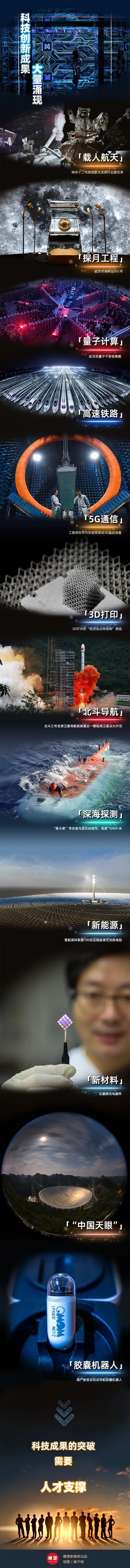 人才隊(duì)伍快速壯大,人才創(chuàng)新活力競(jìng)相迸發(fā),人才紅利加速釋放,科技創(chuàng)新成果大量涌現(xiàn)。載人航天、探月工程、深潛探測(cè)、量子通信等一批具有國(guó)際影響的高水平成果舉世矚目。“中國(guó)天眼”落成啟動(dòng),北斗導(dǎo)航組網(wǎng)運(yùn)行,川藏鐵路開(kāi)工建設(shè),3D打印、基因測(cè)序、新材料、新能源等產(chǎn)業(yè)化步伐加快,高速鐵路、超級(jí)計(jì)算機(jī)、5G通信、高溫氣冷堆等高端裝備研發(fā)制造連續(xù)取得重大突破,一些前沿領(lǐng)域開(kāi)始進(jìn)入并跑、領(lǐng)跑階段,我國(guó)在全球創(chuàng)新版圖中的位勢(shì)節(jié)節(jié)攀升。