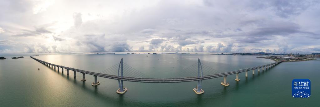 這是2020年9月12日拍攝的港珠澳大橋(無人機全景照片)。新華社記者 陳曄華 攝