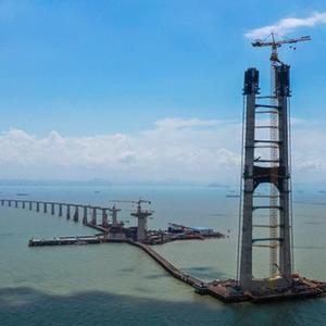 由中交二航局承建的深中通道伶仃洋大橋東索塔(7月1日攝)。新華社記者 劉大偉 攝