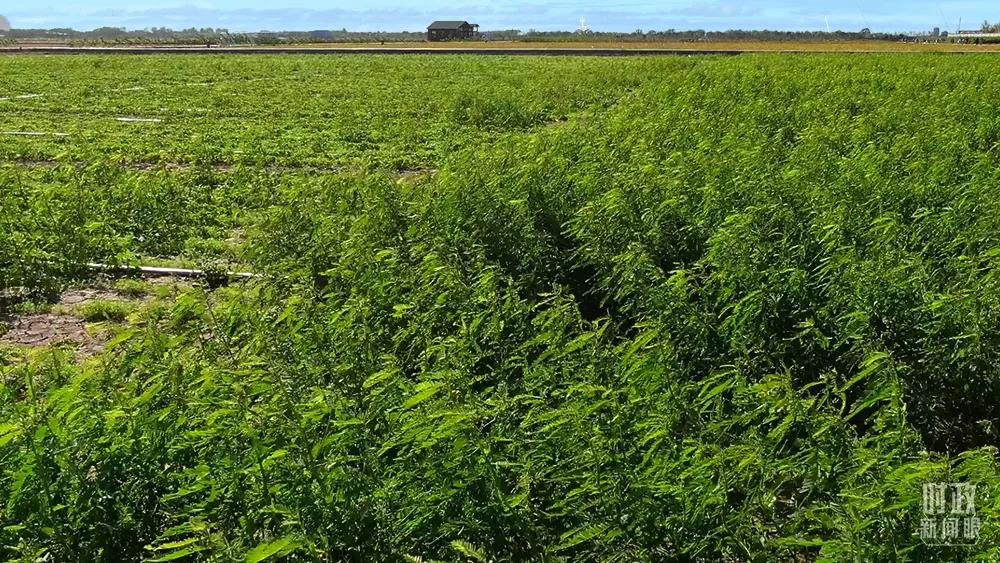 △黃河三角洲農(nóng)高區(qū)。田菁是耐鹽堿綠肥作物,能夠促進(jìn)鹽堿地用養(yǎng)結(jié)合。(總臺記者韓森拍攝)