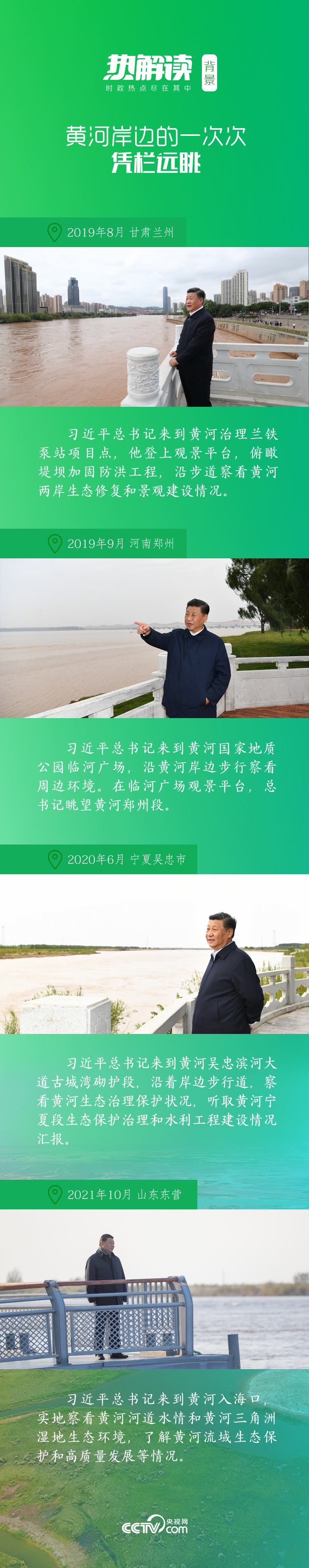 甘肅蘭州、寧夏吳忠、山西太原、河南鄭州和蘭考、山東東營……黨的十八大以來,總書記多次實地考察黃河流域生態保護和發展情況,為民族永續發展的千秋大計傾注心血。