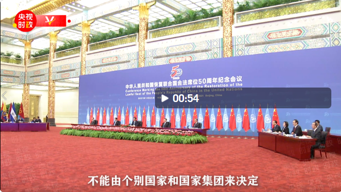 國家主席習(xí)近平25日在北京出席中華人民共和國恢復(fù)聯(lián)合國合法席位50周年紀(jì)念會議并發(fā)表重要講話。