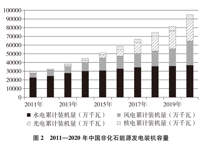 非化石能源快速發展。中國把非化石能源放在能源發展優先位置,大力開發利用非化石能源,推進能源綠色低碳轉型。初步核算,2020年,中國非化石能源占能源消費總量比重提高到15.9%,比2005年大幅提升了8.5個百分點;中國非化石能源發電裝機總規模達到9.8億千瓦,占總裝機的比重達到44.7%,其中,風電、光伏、水電、生物質發電、核電裝機容量分別達到2.8億千瓦、2.5億千瓦、3.7億千瓦、2952萬千瓦、4989萬千瓦,光伏和風電裝機容量較2005年分別增加了3000多倍和200多倍。非化石能源發電量達到2.6萬億千瓦時,占全社會用電量的比重達到三分之一以上。