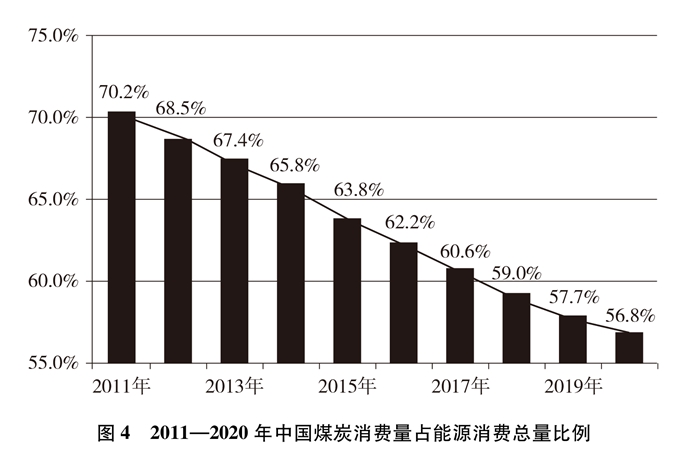 能源消費結構向清潔低碳加速轉化。為應對化石能源燃燒所帶來的環境污染和氣候變化問題,中國嚴控煤炭消費,煤炭消費占比持續明顯下降。2020年中國能源消費總量控制在50億噸標準煤以內,煤炭占能源消費總量比重由2005年的72.4%下降至2020年的56.8%。中國超額完成“十三五”煤炭去產能、淘汰煤電落后產能目標任務,累計淘汰煤電落后產能4500萬千瓦以上。截至2020年底,中國北方地區冬季清潔取暖率已提升到60%以上,京津冀及周邊地區、汾渭平原累計完成散煤替代2500萬戶左右,削減散煤約5000萬噸,據測算,相當于少排放二氧化碳約9200萬噸。