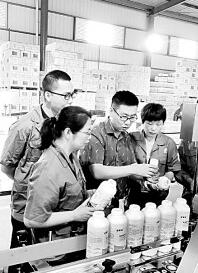 省級科技特派員陳慶文(右二)為農業產品研制提供技術指導。資料圖片