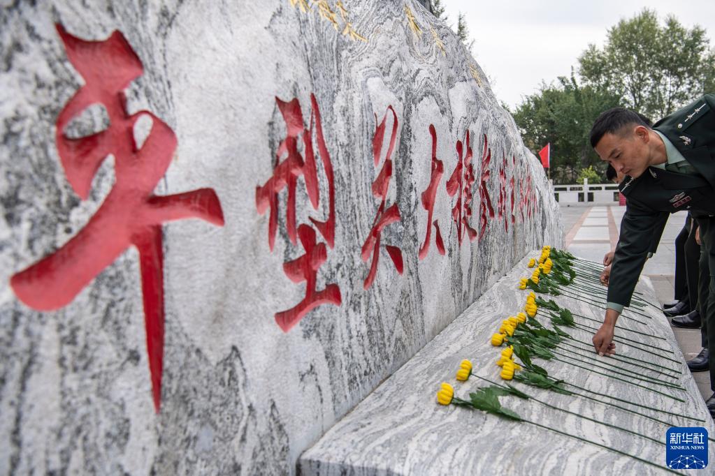 2020年9月25日,在位于山西省大同市靈丘縣的平型關(guān)大捷紀(jì)念館,工作人員向革命先烈獻(xiàn)花。
