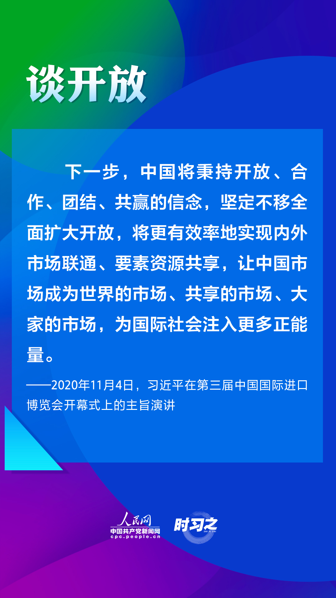 第四屆中國國際進口博覽會將于2021年11月5日至10日在上海舉辦。2018年以來,習近平主席三次在進博會上作主旨演講,為推動建設開放型世界經濟闡明中國主張。人民網·中國共產黨新聞網“時習之”欄目帶您重溫習近平主席重要講話。