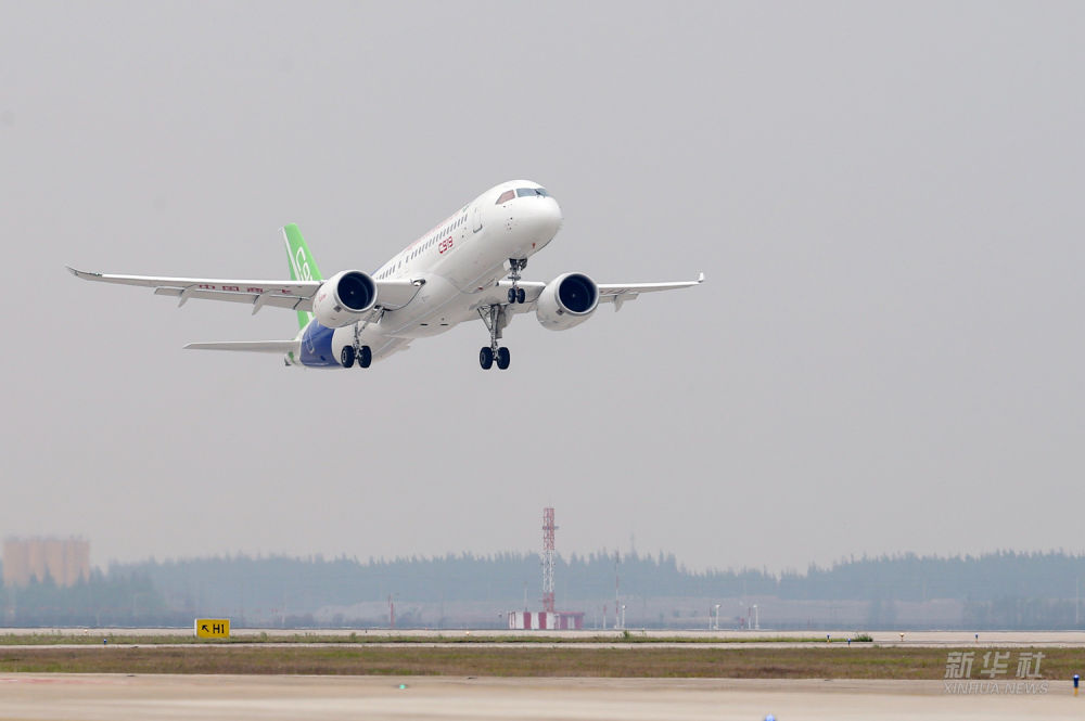 2017年5月5日,國產(chǎn)大型客機C919在上海浦東國際機場首飛成功。
