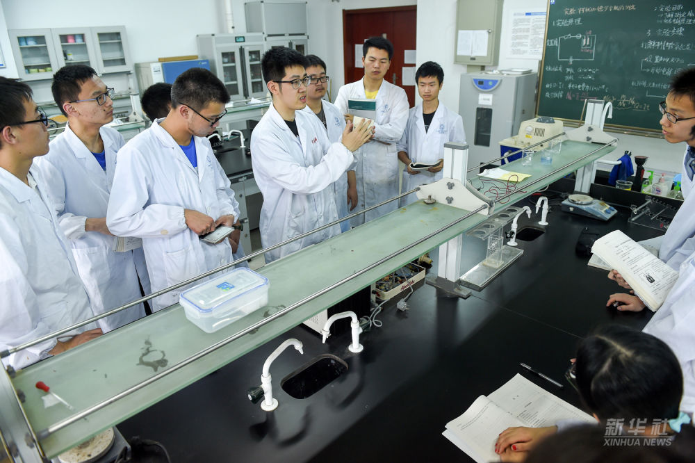 2017年5月11日,在中國科大化學(xué)物理系實驗室內(nèi),學(xué)生們在上實驗課。