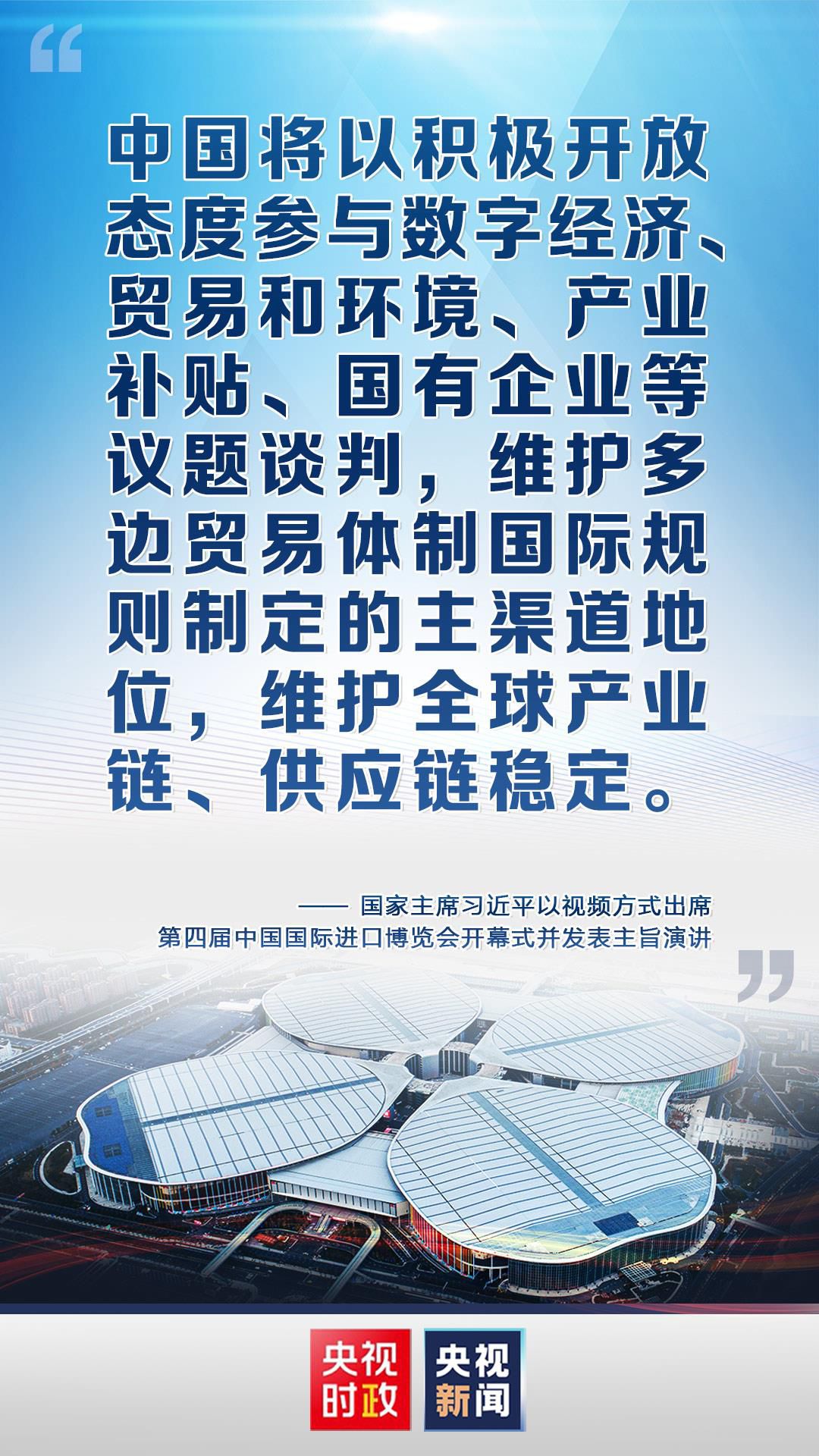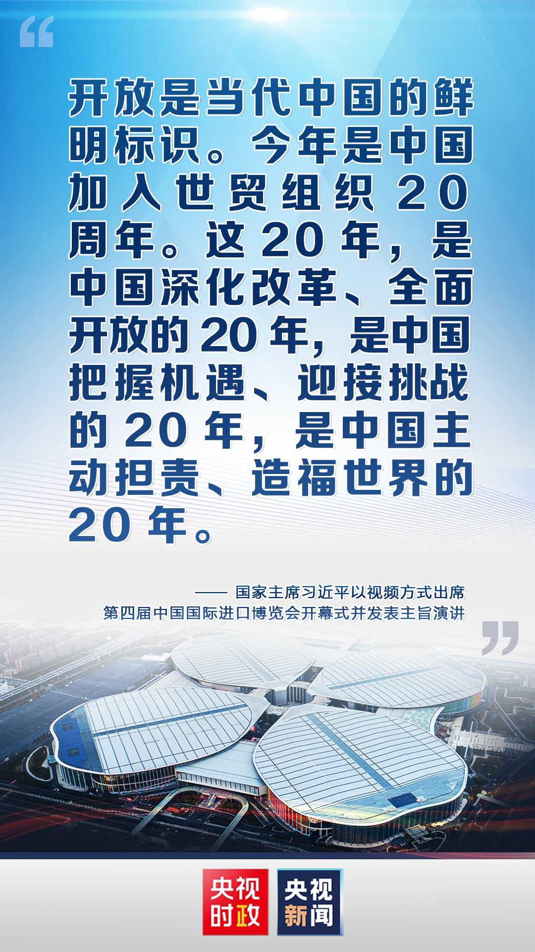 國家主席習近平4日以視頻方式出席第四屆中國國際進口博覽會開幕式并發表主旨演講。