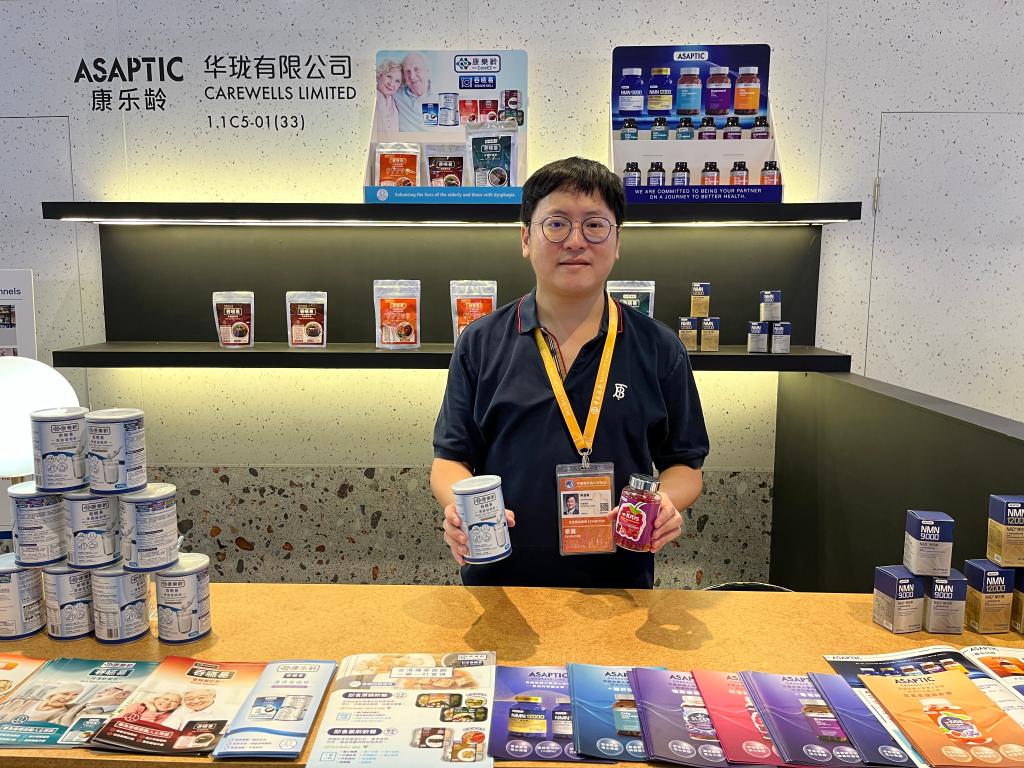 今年的“香港產品展區”,除了有家喻戶曉的香港品牌,如李錦記、澳至尊、八珍等,還引進了一些新展商,比如華瓏有限公司帶來的香港初創品牌康樂齡吞咽易。