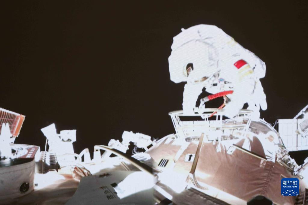 11月7日在北京航天飛行控制中心拍攝的神舟十三號航天員王亞平出艙畫面。新華社發(郭中正 攝)
