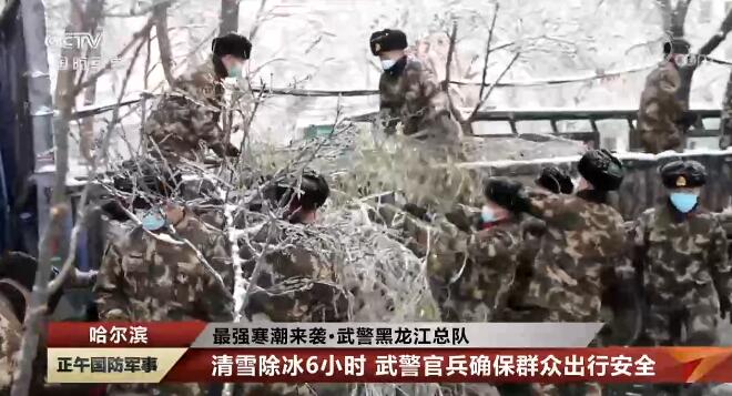 8日,黑龍江省哈爾濱市大部分地區遭遇了罕見的凍雨天氣,導致道路兩旁許多樹木被壓倒、樹枝折斷,嚴重影響人們的出行安全。武警黑龍江總隊接到命令后,迅速組織600余名官兵,攜帶清雪器材近千套,按照實際任務進行編組,對倒伏樹木和積雪進行清理。經過6個小時連續作業,官兵們完成了市區主要街道的清雪除冰任務,為來往行人開辟出了一條安全通道。