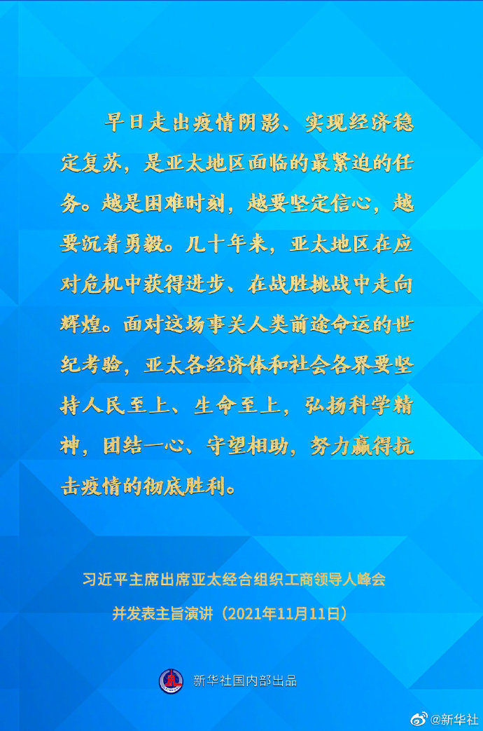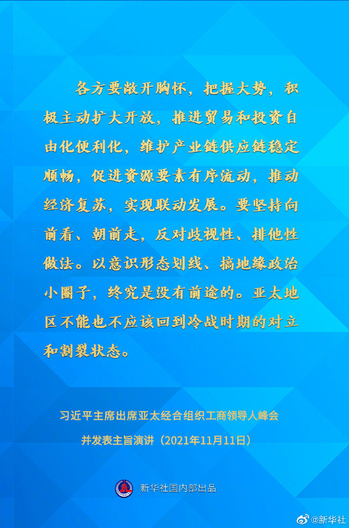11月11日,國家主席習近平應邀在北京以視頻方式向亞太經合組織工商領導人峰會發表主旨演講。一起來看要點↓
