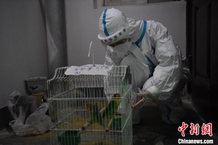 中新網記者跟隨張瑜,記錄她抗疫的“十二時辰”時看到,時至下午2點,她穿好防護服,進入封閉小區替居民照看鸚鵡,并電話告知主人寵物的最新情況。