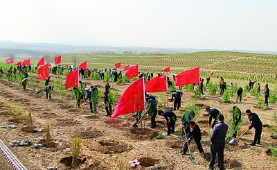 山西右玉縣干部群眾義務植樹 辛泰攝/光明圖片