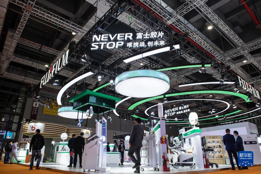 這是11月8日拍攝的第四屆中國國際進口博覽會技術裝備展區的日本富士膠片集團展臺。新華社記者 孟濤 攝