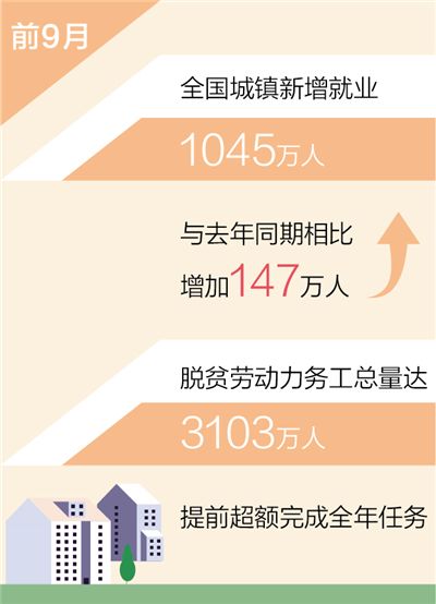 人社部就業促進司有關負責人表示,今年以來,隨著我國經濟持續穩定恢復,就業形勢保持總體穩定、好于預期:1月至9月,全國城鎮新增就業1045萬人,完成全年目標任務的95%,與去年同期相比,增加147萬人,增幅為16%。三季度恢復態勢更加積極,重點群體就業保持穩定。