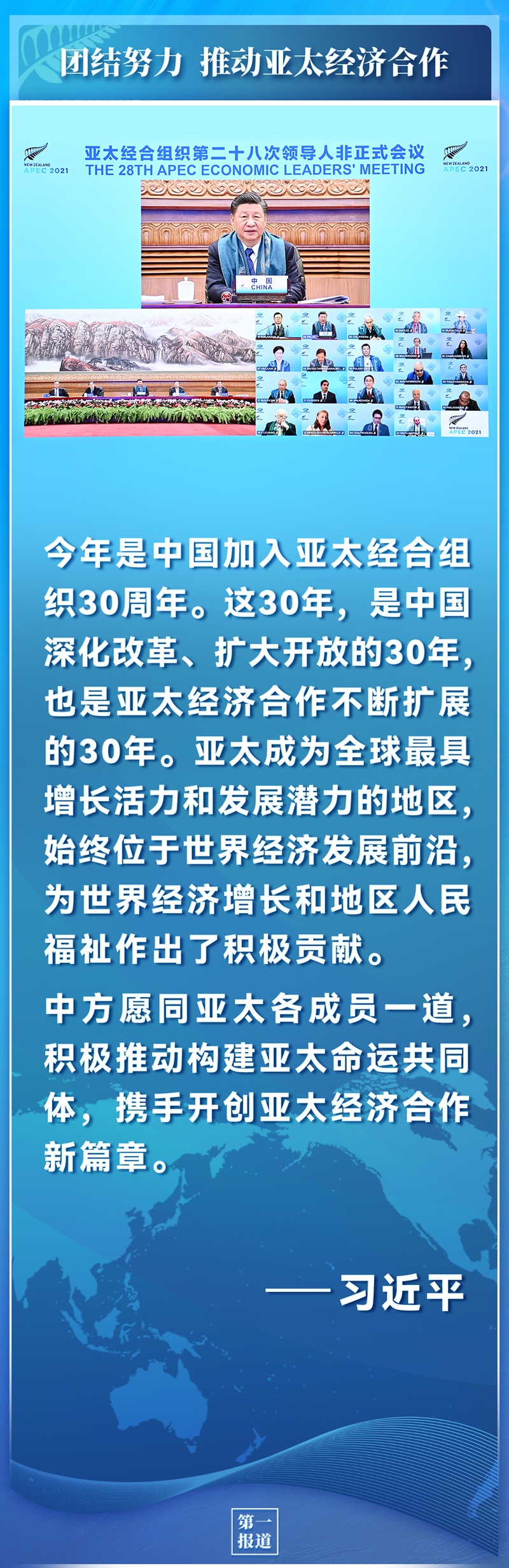 今年是中國加入亞太經合組織30周年。這30年,是中國深化改革、擴大開放的30年,也是亞太經濟合作不斷擴展的30年。亞太成為全球最具增長活力和發展潛力的地區,始終位于世界經濟發展前沿,為世界經濟增長和地區人民福祉作出了積極貢獻。