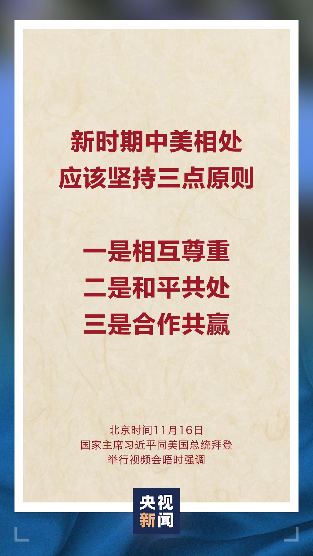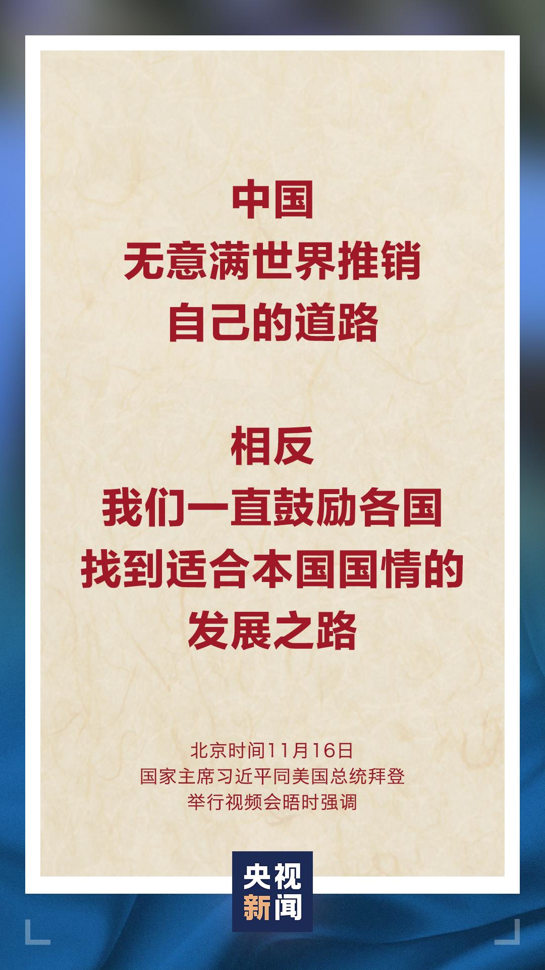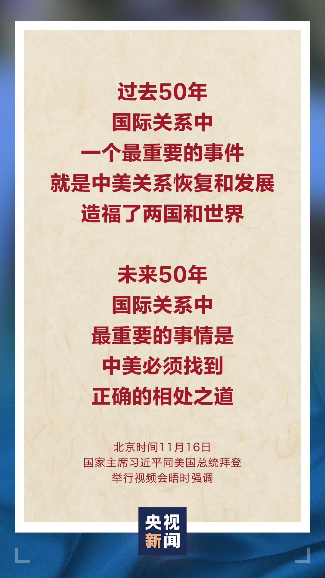 11月16日上午,國家主席習近平同美國總統拜登舉行視頻會晤。雙方就事關中美關系發展的戰略性、全局性、根本性問題以及共同關心的重要問題進行了充分、深入的溝通和交流。