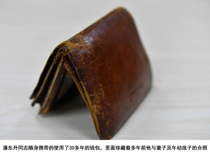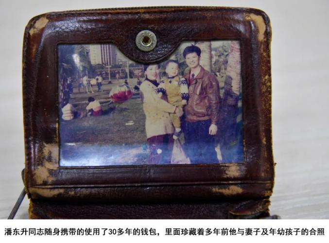 潘東升犧牲后,工作人員在整理他的遺物時找到了他隨身攜帶的錢包。錢包已破舊不堪,里面夾著他和妻子、兒子的合照。