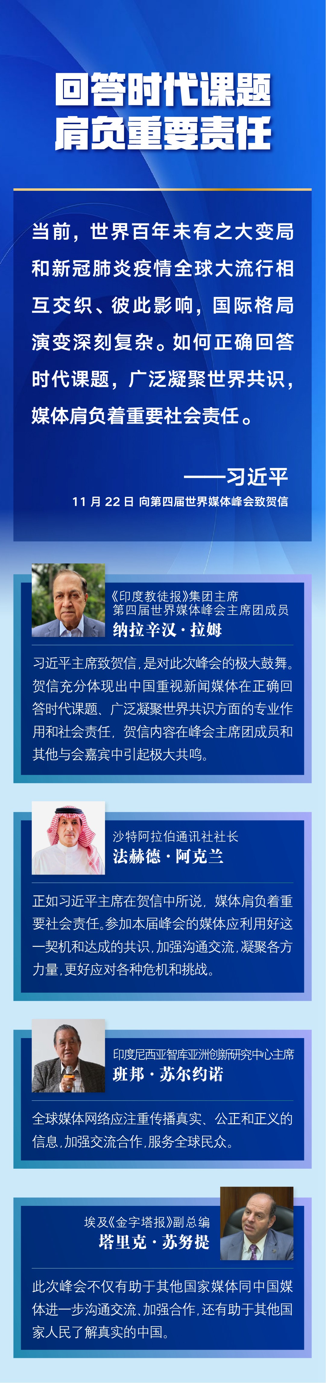 多國媒體人士認為,習近平主席的賀信對全球媒體更好肩負社會責任、廣泛凝聚世界共識作出重要闡述,為新形勢下世界媒體加強交流與合作、弘揚全人類共同價值、推動構建人類命運共同體注入新的推動力——