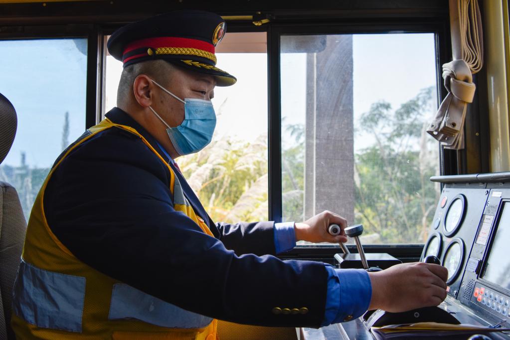 11月23日,韋瑋在成都北車站城廂站進(jìn)行調(diào)車作業(yè)。新華社記者胥冰潔攝