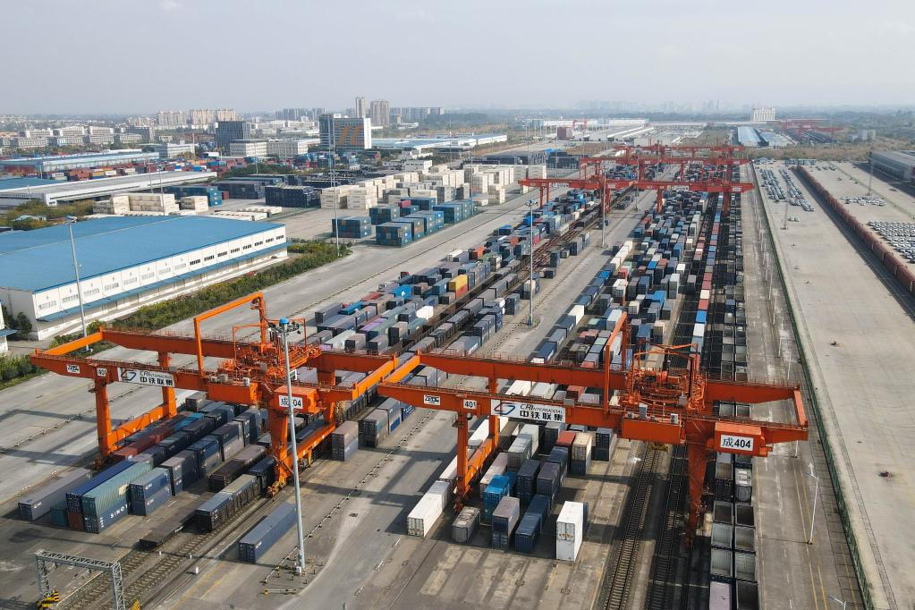 這是11月23日拍攝的四川省成都市青白江區(qū)的成都國際鐵路港(無人機(jī)照片)。新華社記者胥冰潔攝
