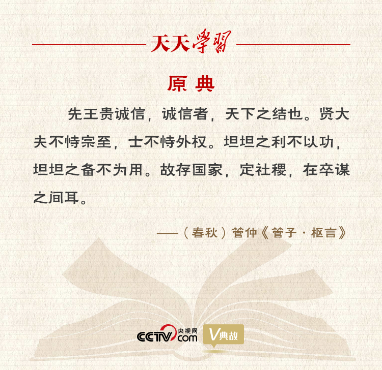 “誠信者,天下之結也”出自《管子·樞言》。結:關鍵。意思是恪守誠信,是天下行為準則的關鍵。