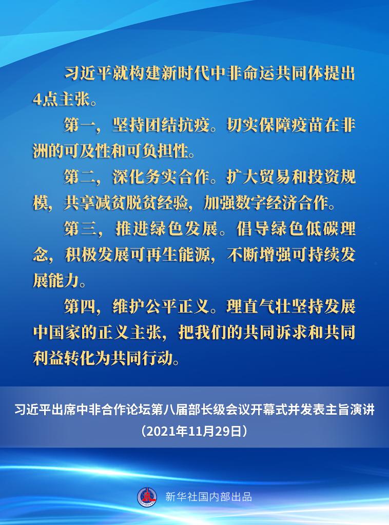 11月29日晚,國(guó)家主席習(xí)近平在北京以視頻方式出席中非合作論壇第八屆部長(zhǎng)級(jí)會(huì)議開幕式并發(fā)表主旨演講。一起來看要點(diǎn)。