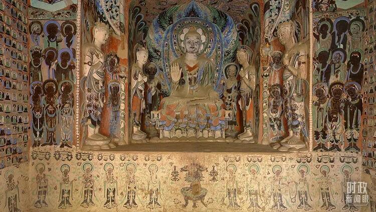 △敦煌莫高窟第420窟,創建于隋,南、西、北壁各開一龕,被稱為“三龕窟”。敦煌文化被認為集建筑藝術、彩塑藝術、壁畫藝術、佛教文化于一身。(資料圖)