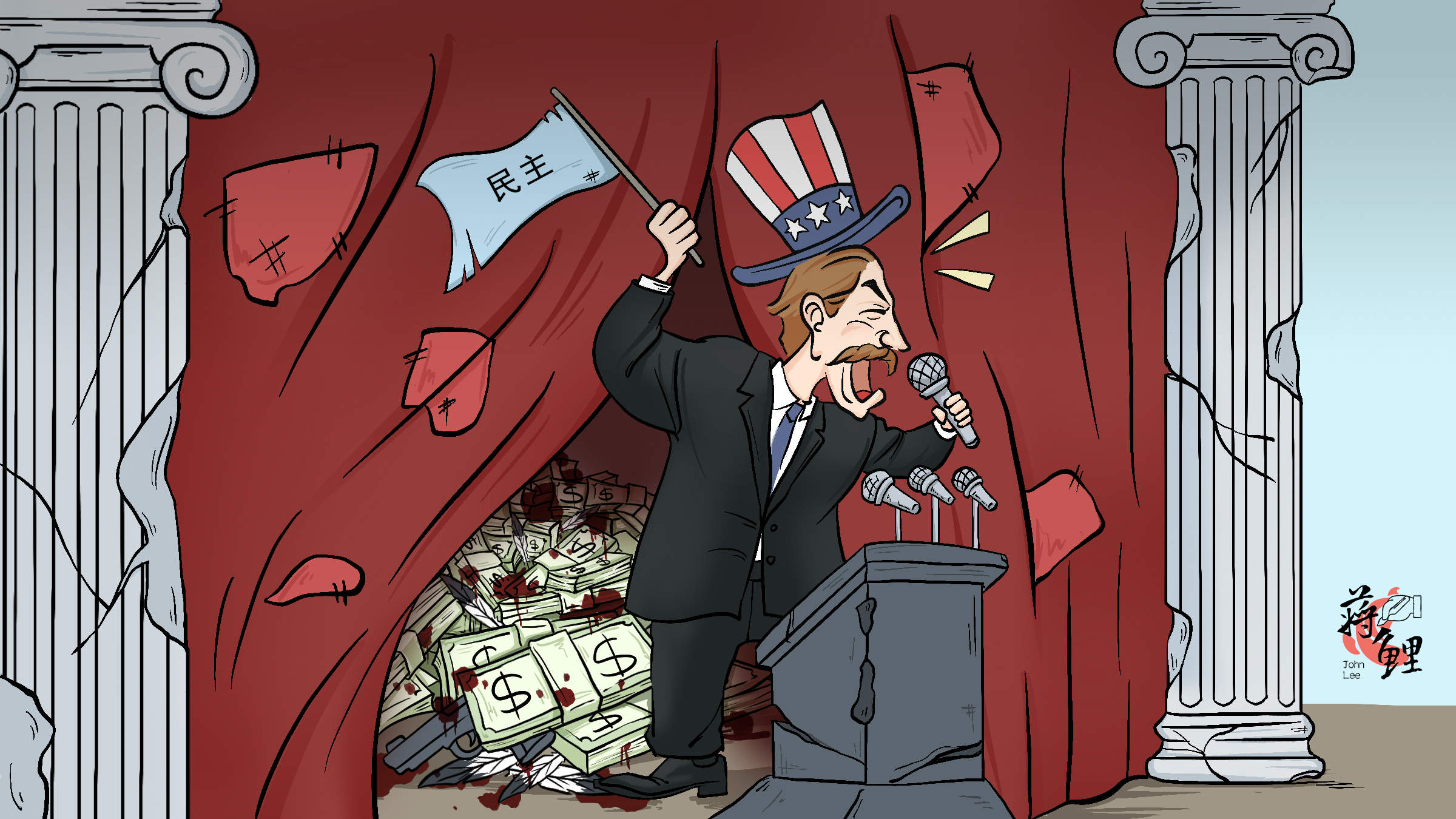 美國高舉“民主”的大旗,卻遮不住其國內種種丑陋的民主劣跡。希望那些跟隨者們也停下腳步,看看它遮羞的幕布后,染血的美元。