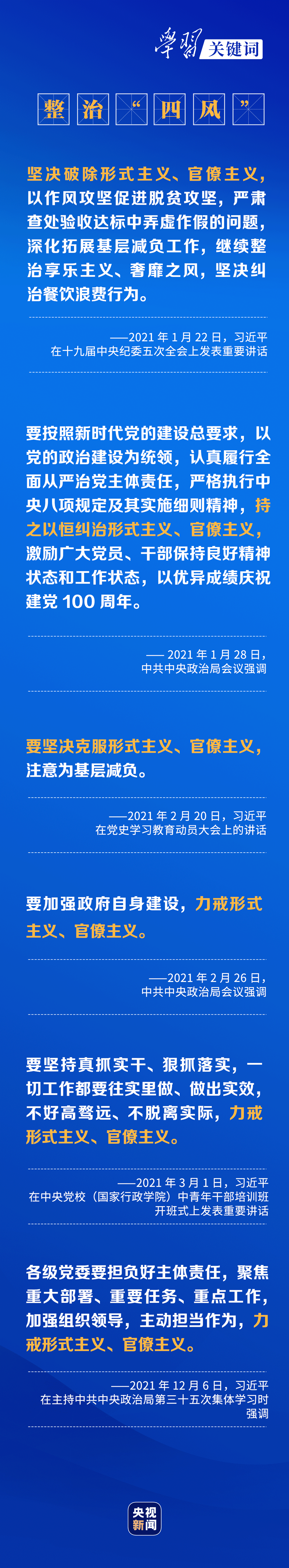 “要把造福人民作為最重要的政績(jī),堅(jiān)決反對(duì)和克服形式主義、官僚主義。”