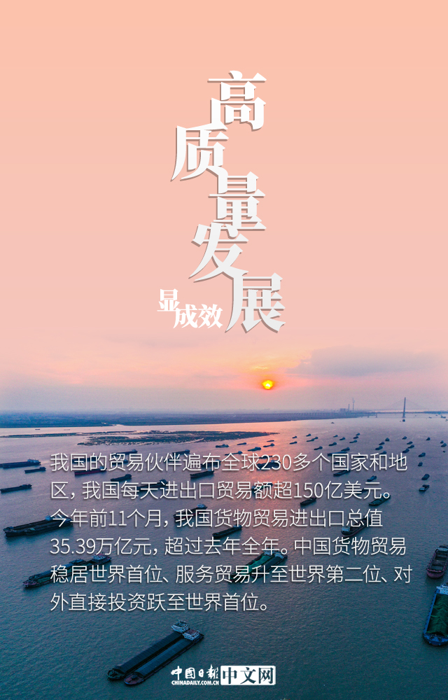 今年以來,外貿(mào)對中國經(jīng)濟和世界經(jīng)濟的貢獻日益凸顯,有力地帶動經(jīng)濟增長,穩(wěn)崗就業(yè)作用突出,滿足人民多樣化需求,推動全球經(jīng)貿(mào)復(fù)蘇。1-11月份,中國進出口總值35.39萬億元人民幣,同比增長22%,比2019年同期增長24%。外貿(mào)進出口總值已超過去年全年規(guī)模。中國持續(xù)推進高水平對外開放,以開放促改革、促發(fā)展成效不斷顯現(xiàn),外貿(mào)量穩(wěn)質(zhì)升的基礎(chǔ)持續(xù)鞏固。