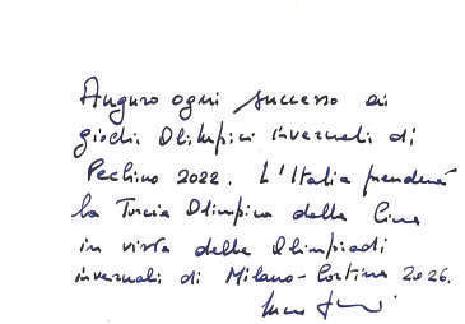 祝愿北京2022年冬奧會(huì)圓滿(mǎn)成功。意大利將從中國(guó)手中接過(guò)奧運(yùn)圣火,籌備2026年米蘭/科爾蒂納丹佩佐冬奧會(huì)。——方瀾意