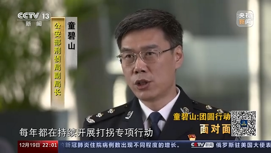 公安部刑偵局副局長 童碧山:其實我們從2009年開始,每年都在持續開展打拐專項行動,經過多年的努力,目前為止拐賣兒童的案件實際上是大幅下降,影響比較惡劣的盜搶拐賣兒童的案件年發案在20起左右,基本上都是能夠快偵快破。