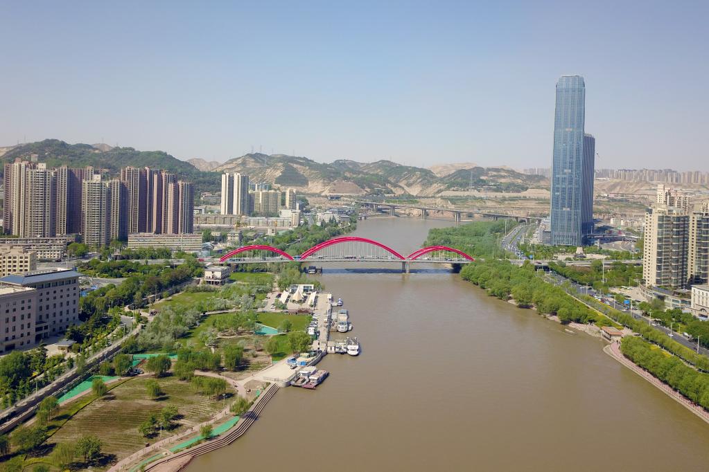 這是5月8日拍攝的黃河蘭州段景色(無(wú)人機(jī)照片)。新華社記者范培珅攝