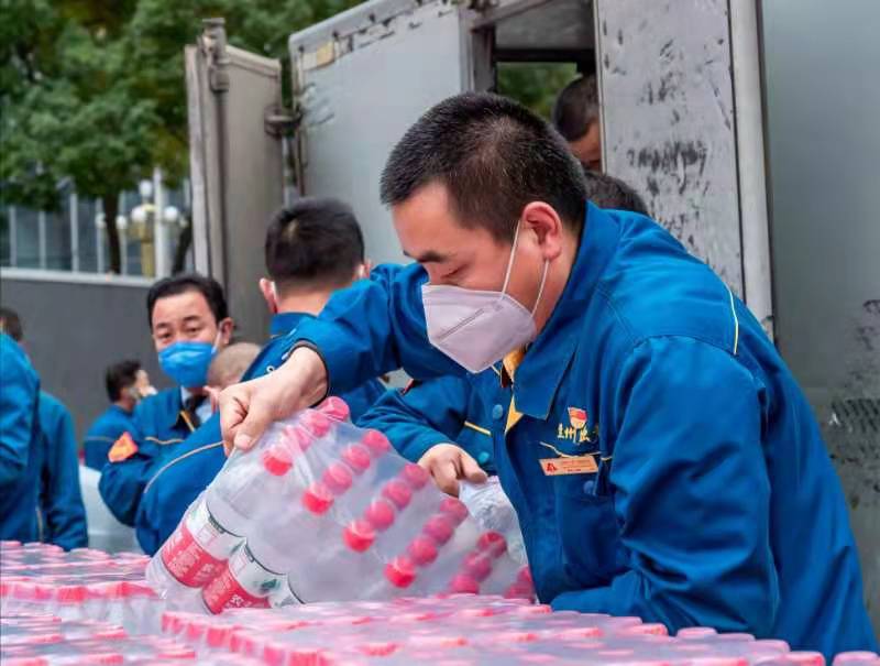 10月25日,蘇彪(右一)在蘭州市運(yùn)送防疫物資。(受訪者供圖)