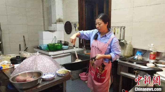 阿芬在其民宿里做飯。 錢晨菲 攝