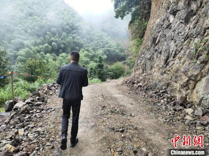 因為連通各自然村的道路還未完全修好,村干部走訪村民只能步行前往。