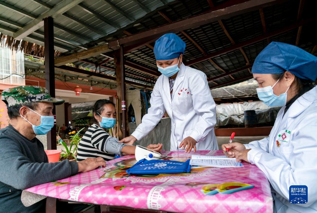 基諾山基諾族鄉衛生院的家庭醫生為基諾族老年人檢查身體(12月13日攝)。新華社記者 陳欣波 攝