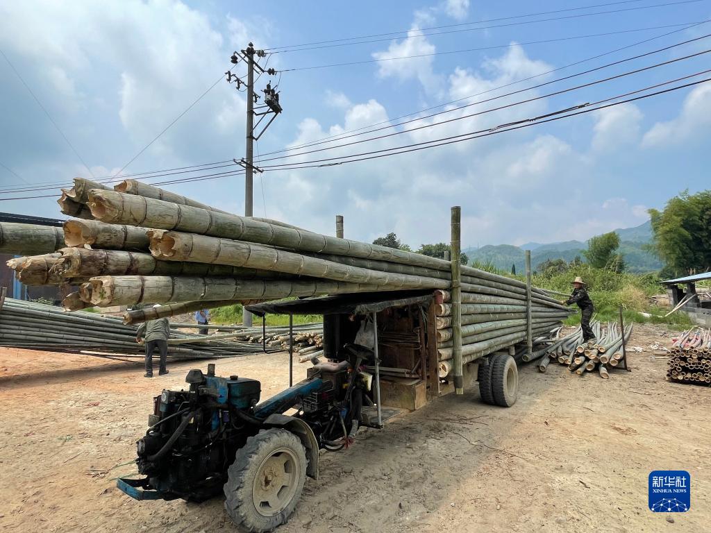 湖南省汝城縣熱水鎮村民在搬運竹子(8月22日攝)。新華社記者 蘇曉洲 攝