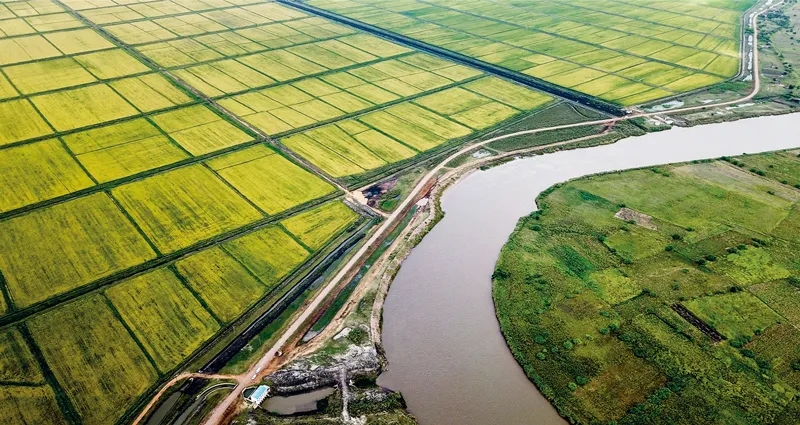 消除貧困是人類面臨的共同挑戰(zhàn)。中國通過“一帶一路”倡議幫助沿線各國增加就業(yè)、改善民生,以實際行動為推進全球減貧事業(yè)作出貢獻。根據(jù)世界銀行研究報告,“一帶一路”倡議將使相關(guān)國家約760萬人擺脫極端貧困、3200萬人擺脫中度貧困。圖為2019年4月7日無人機拍攝的莫桑比克中非農(nóng)業(yè)合作項目——萬寶莫桑農(nóng)業(yè)園的水稻田,該項目極大地緩解了莫桑比克糧食短缺問題。 新華社記者 張宇/攝