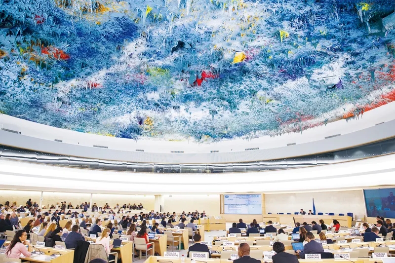 構(gòu)建人類命運共同體被寫入聯(lián)合國社會發(fā)展委員會、安理會、人權(quán)理事會以及聯(lián)合國大會裁軍與國際安全委員會等機構(gòu)的多項決議中,有力推動這一理念變成全球性共識。圖為2017年3月20日,中國代表在聯(lián)合國人權(quán)理事會第三十四次會議上代表發(fā)展中國家發(fā)言。3天后,人權(quán)理事會通過決議,明確表示要“構(gòu)建人類命運共同體”。 新華社記者 徐金泉/攝