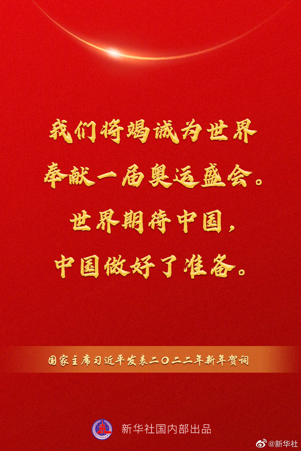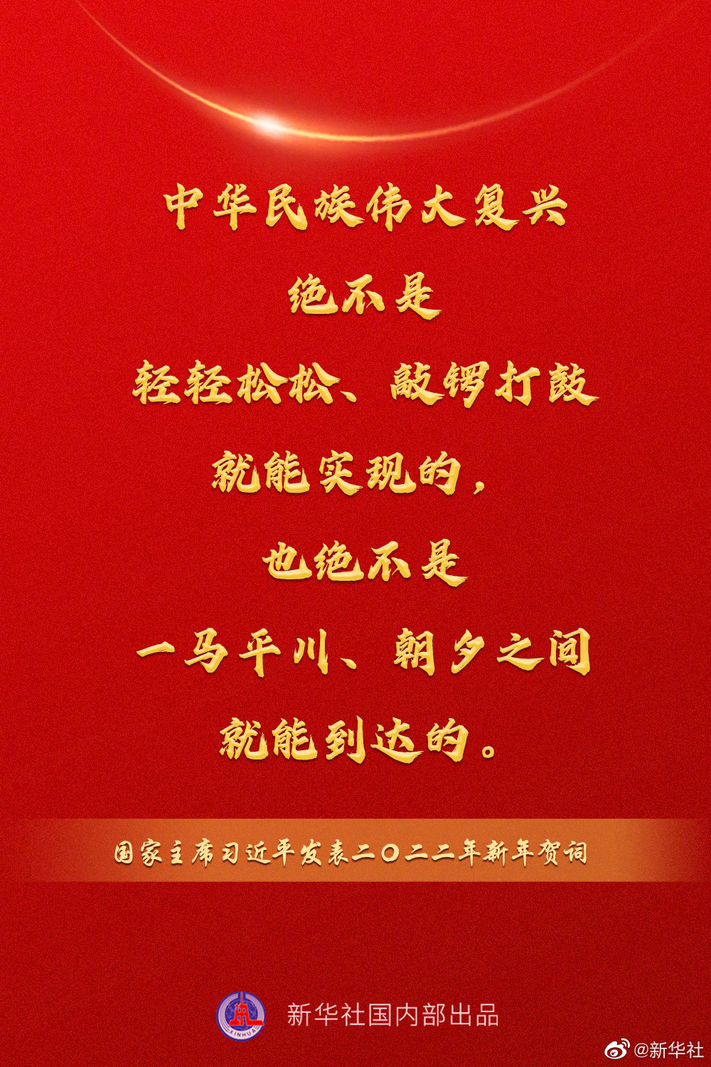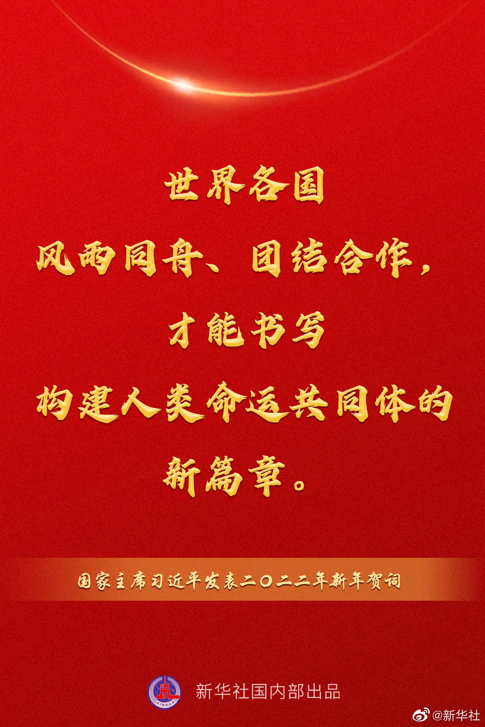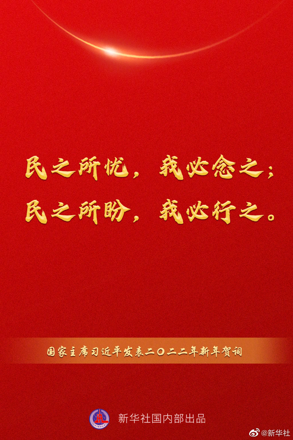 國家主席習近平發表二〇二二年新年賀詞,一起來看金句。