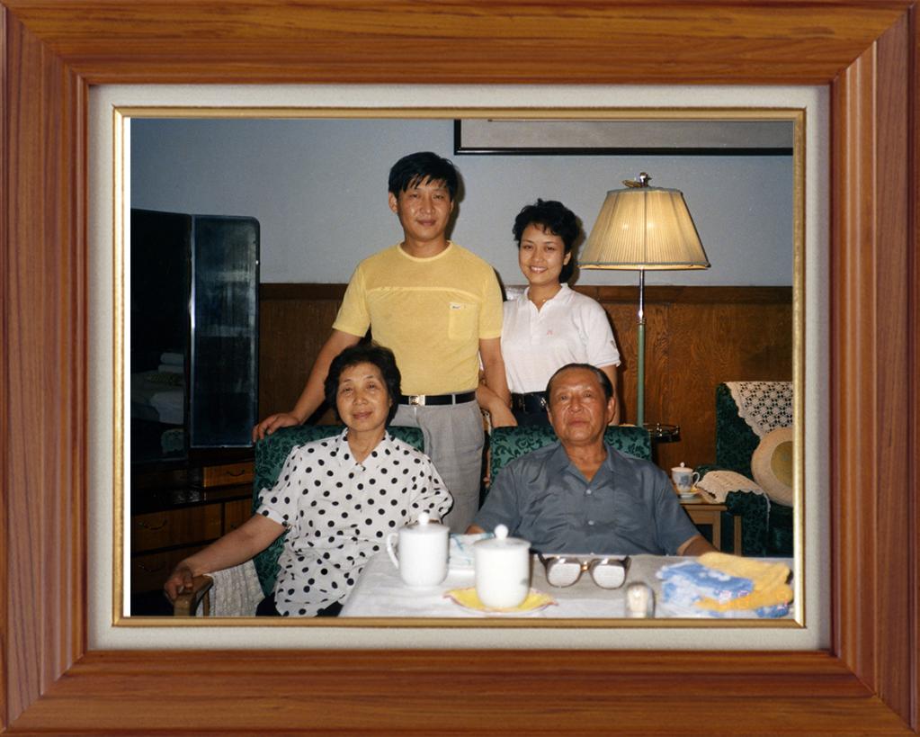 一張是習近平與夫人彭麗媛同父親習仲勛、母親齊心的合影。