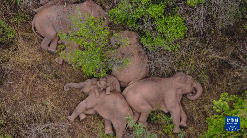 這是2021年6月7日在云南省昆明市晉寧區夕陽彝族鄉拍攝的野象(無人機照片)。新華社發